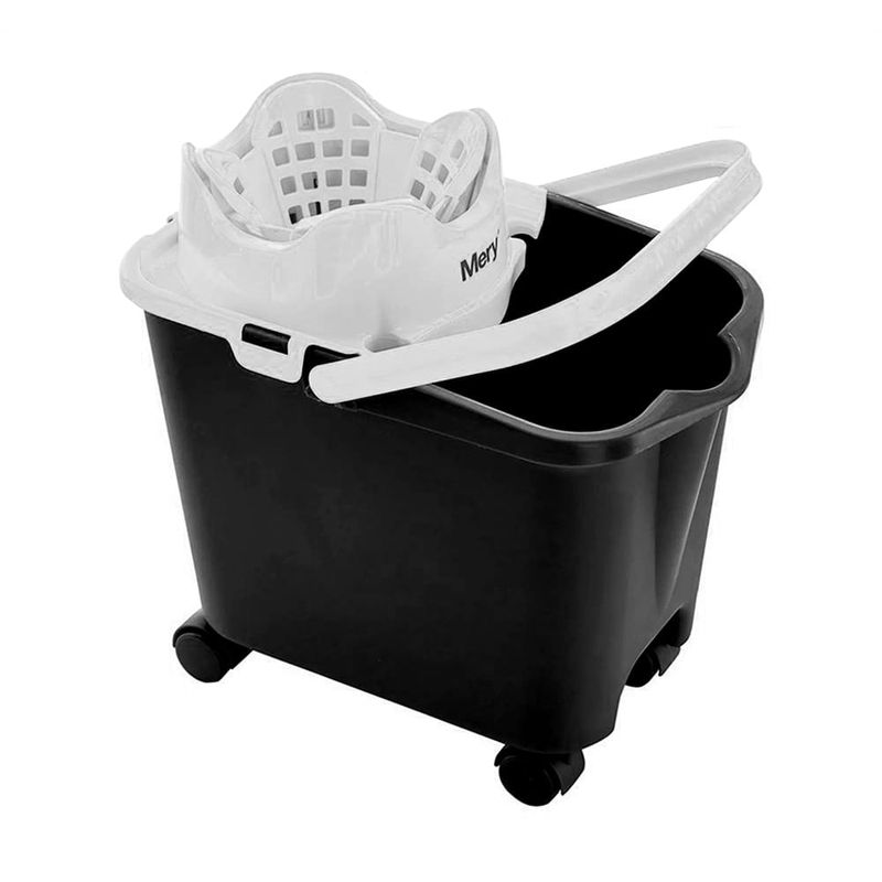 Balde con escurridor y ruedas 14 L 38x26x39 cm gris