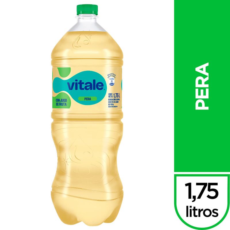 "Disfruta de la frescura natural del agua VITALE con sabor a pera en un práctico envase de 1,75 litros. Hidratación y sabor incomparables en cada sorbo."
