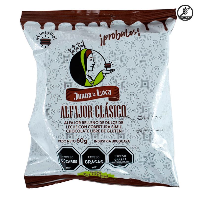 Alfajor sin gluten, chocolate negro, JUANA LA LOCA, 60g: Deléitate con la combinación perfecta de sabores en este exquisito alfajor apto para celíacos