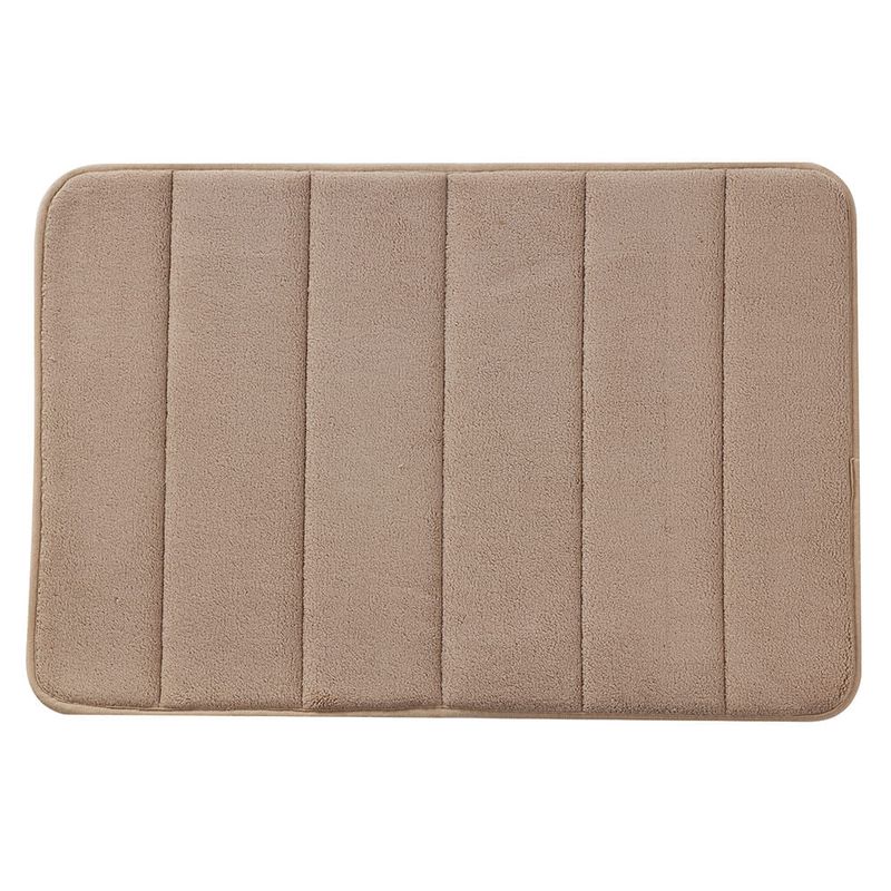 Alfombra para baño de 40x60 cm en color beige. Fabricada con materiales suaves y absorbentes de alta calidad. Perfecta para mantener el suelo del baño seco y limpio, aportando además un toque de elegancia al ambiente.