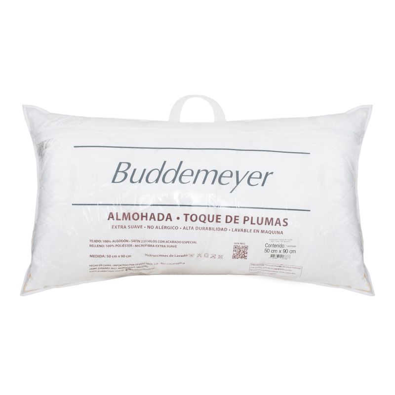 La Almohada BUDDEMEYER Toque de Pluma, 50x90 cm, redefine el confort. Con relleno de alta calidad, brinda suavidad y soporte. Su funda elegante complementa tu descanso con lujo y estilo.