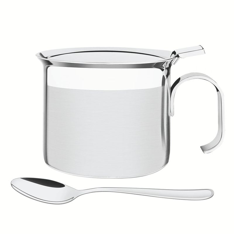 El azucarero de acero inoxidable Tramontina es una pieza práctica y elegante que te ayudará a mantener tu azúcar fresca y a mano.