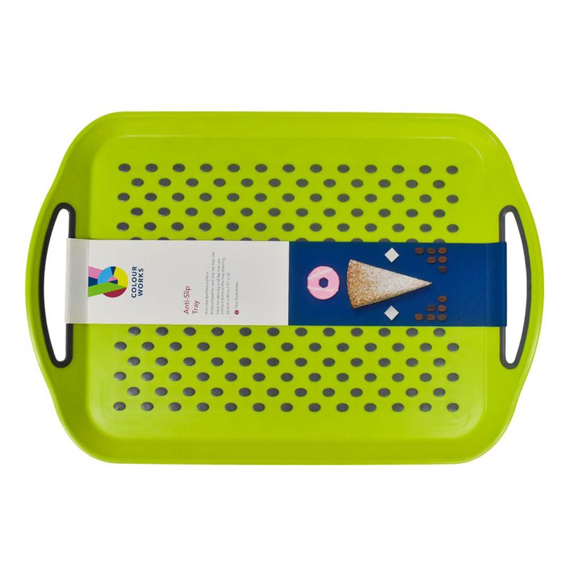 Bandeja de servicio antideslizante 41x28 cm verde: Sirve con seguridad y estilo. Esta bandeja, con su superficie antideslizante, es perfecta para llevar y presentar tus alimentos de manera práctica y colorida.