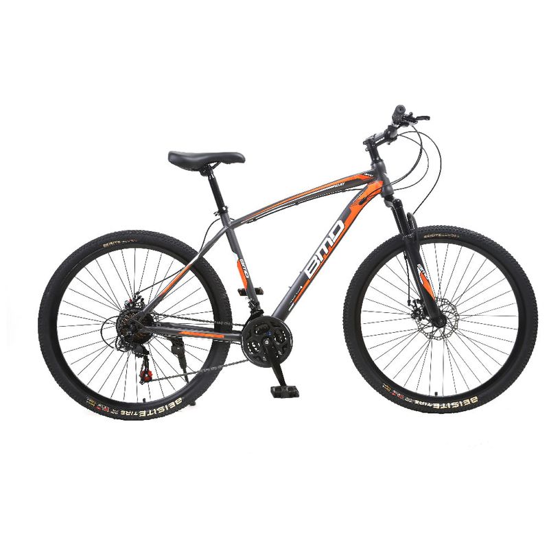 La Bicicleta BMD r29 es una robusta bicicleta de montaña con cuadro de acero resistente. Ofrece 21 velocidades para adaptarse a todo tipo de terrenos. Sus ruedas de 29 pulgadas proporcionan un excelente rendimiento. Su notable diseño combina tonalidades grises y naranjas, generando gran impacto visual.