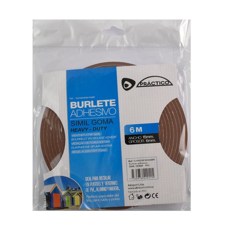 Burlete practico símil goma marrón 6mX15mmX6mm, producto de excelente calidad