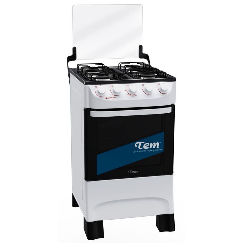 Excelente cocina TEM Mod. Aniversario 4 hornallas y horno a gas. Convertible a gas por cañeria. Doble vidrio en horno. Tapa de cristal y mesa de acero. Garantía 1 año.