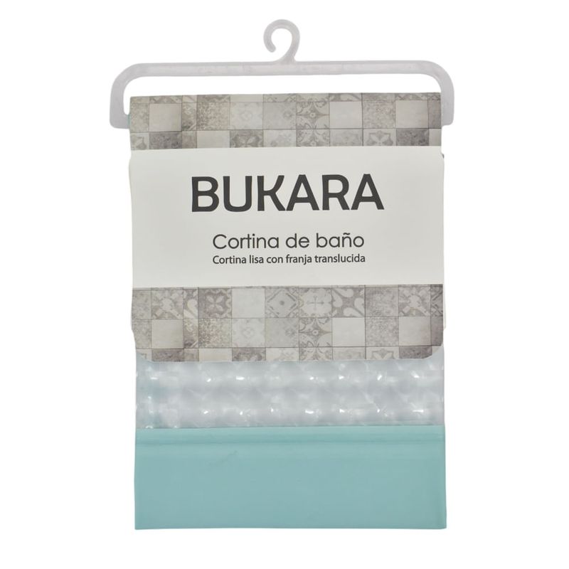 Cortina Baño Bukara Lisa con Transparencia. Diseñada para evitar que el agua se salga de la ducha o bañera y mantenga el suelo seco