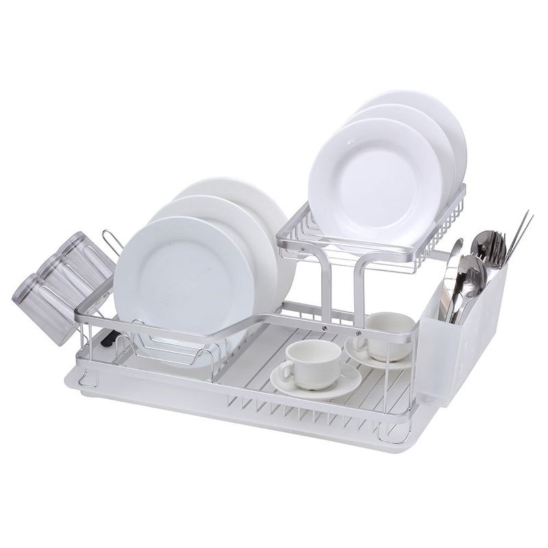 Práctico escurridor de dos pisos en aluminio. Dimensiones 57.6 x 29.8 x 27 cm. Producto de excelente calidad.