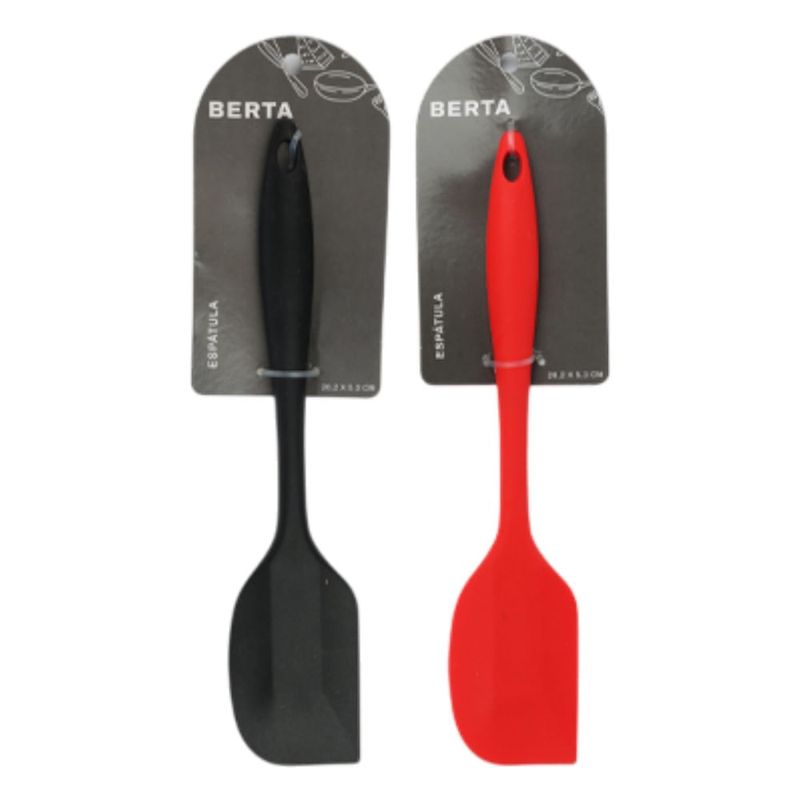 Espátula curva de silicona antiadherente de 26x5 cm, perfecta para mezclar, raspar y voltear alimentos con facilidad. Resistente al calor, flexible y segura para todo tipo de utensilios de cocina.