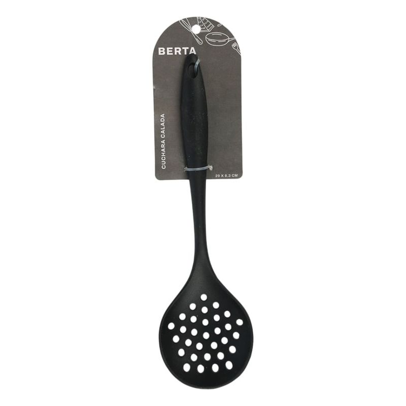 Espumadera de silicona antiadherente de 29x8 cm, ideal para escurrir y servir alimentos fritos o hervidos sin dañar tus utensilios de cocina. Resistente al calor y fácil de limpiar, perfecta para el uso diario.