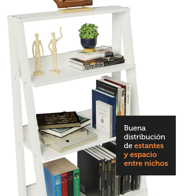 Esta librería tiene una base con 4 soportes, además de una buena distribución de estantes y espacios entre nichos. Este artículo se vende en caja, el armado no está incluido, usted puede contactar a un armador externo llamando a nuestro servicio de Atención al Cliente. El artículo ofrecido es el que corresponde a la descripción, cualquier accesorio es meramente ilustrativo.