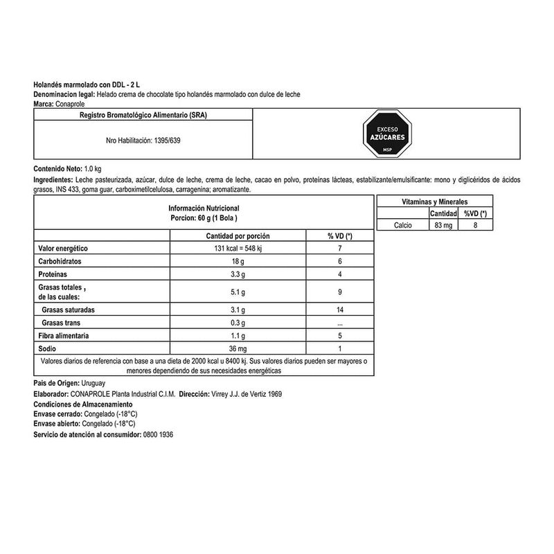 Helado Chocolate Holandés marmolado con Dulce de Leche CONAPROLE 2 L