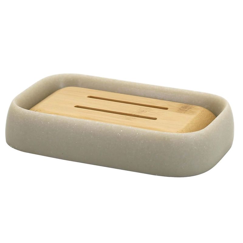 Jabonera en poliresina con detalle en bambú, perfecta para añadir un toque orgánico y moderno a tu baño. Su diseño elegante y funcional mantiene el jabón seco y a mano, fusionando estilo y practicidad.
