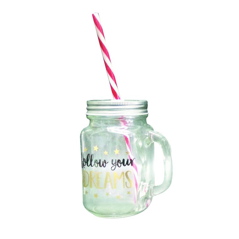 Jarro vidrio con tapa y sorbito 10.7 cm