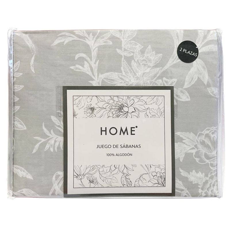 Juego de Sábanas HOME Full 180 hilos azul con hojas 100% algodón