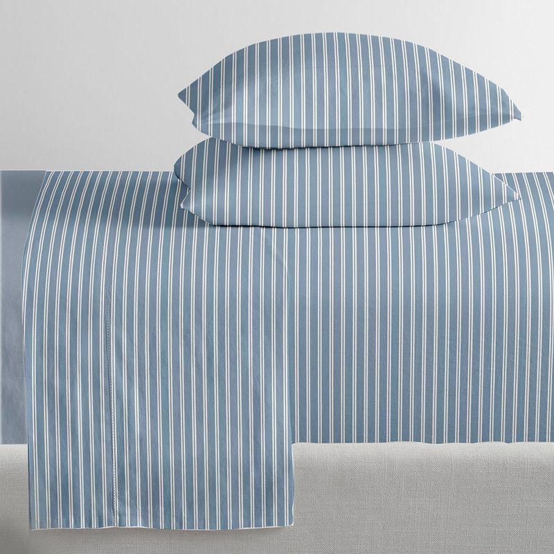 Juego de sábanas HOME Full Microfibra a rayas azul: Sábanas suaves y elegantes con diseño a rayas en azul, tamaño Full, hechas de microfibra de alta calidad para una cama matrimonial.