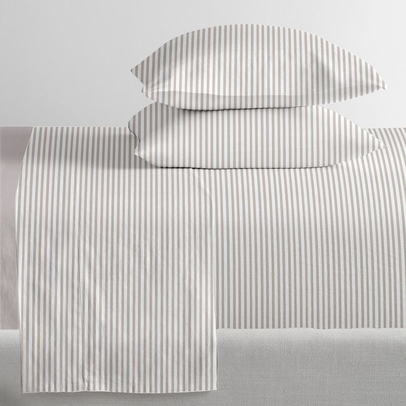Juego de sábanas HOME King Microfibra a rayas beige: Sábanas suaves y elegantes con diseño a rayas en beige, tamaño King, hechas de microfibra de alta calidad para una cama king size.