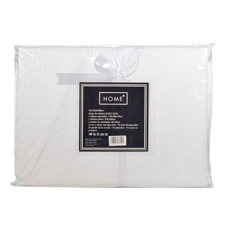 ¡Confort y suavidad con el Juego de sábanas en microfibra! Disponible en color blanco, king size. Hacé del dormir una experiencia única, fresca, suave y relajada… podras descansar de la mejor manera al mejor precio. Disfrutá de las sábanas HOME en microfibra.