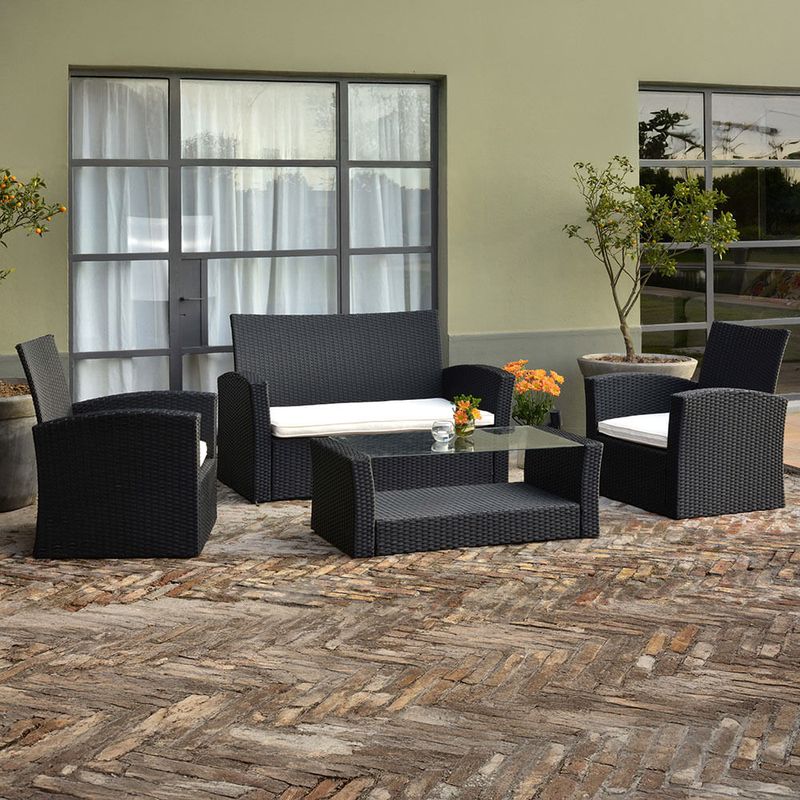 Renová el look de tu jardín con este set de 4 piezas que incluye 1 mesa, 1 sofá y 2 sillones, todo construido con los mejores materiales, además de una excelente calidad de terminación. Soporta 110 kg por plaza. Este artículo se vende en caja, el armado no está incluido, usted puede contactar a un armador externo llamando a nuestro servicio de Atención al Cliente. El artículo ofrecido es el que co
