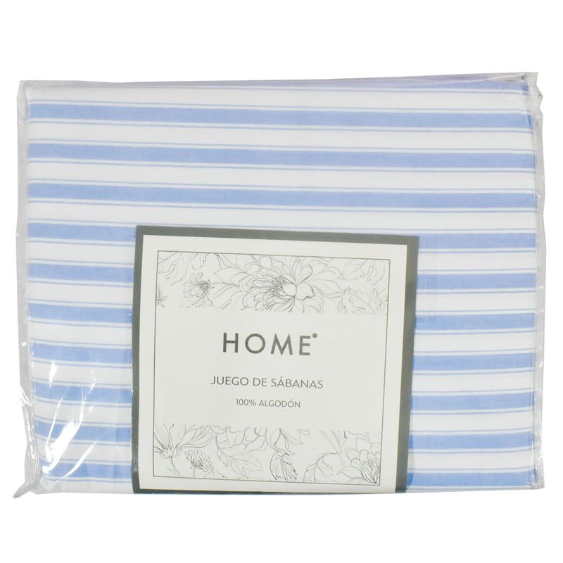 Juego sábanas HOME king 180 h rayado azul 100% algodón