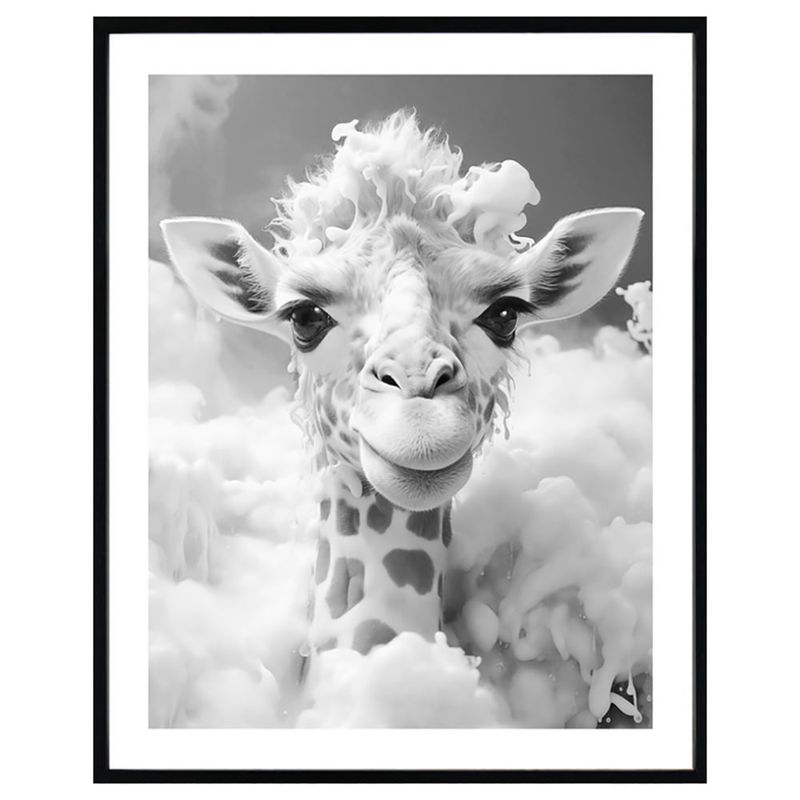 Lámina con marco 40x50 cm Jirafa blanco/negro: Añade un toque sofisticado con esta lámina en blanco y negro de una elegante jirafa. El marco de 40x50 cm realza el contraste, perfecta para una decoración moderna y minimalista.