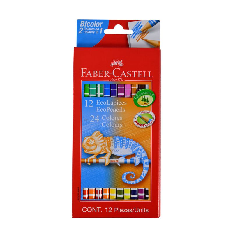 Lápices de colores FABER BICOLOR 12un 24 colores, los mejores útiles para las clases.