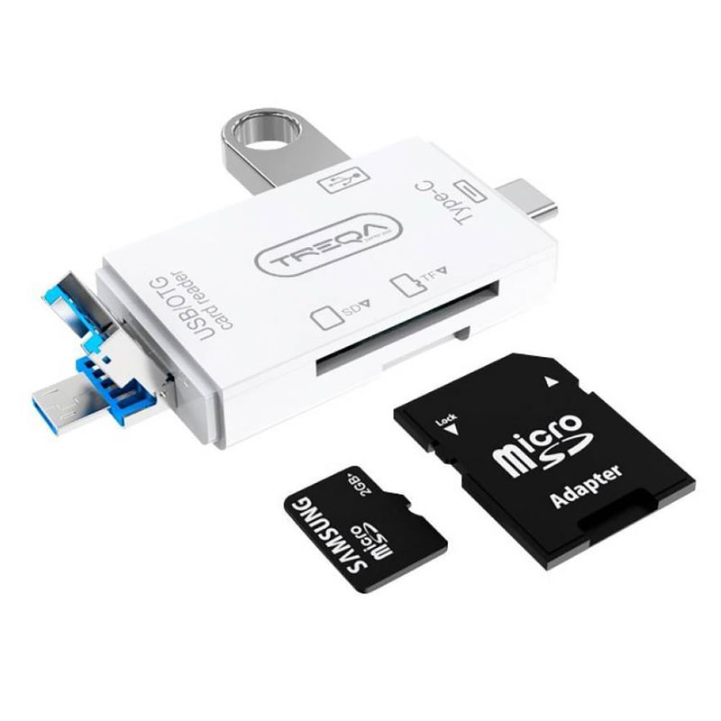 El lector de tarjetas TREQA 6 en 1 es compatible con una variedad de tarjetas de memoria, incluyendo SD, microSD, y más. Conexión USB para una fácil transferencia de datos entre dispositivos.