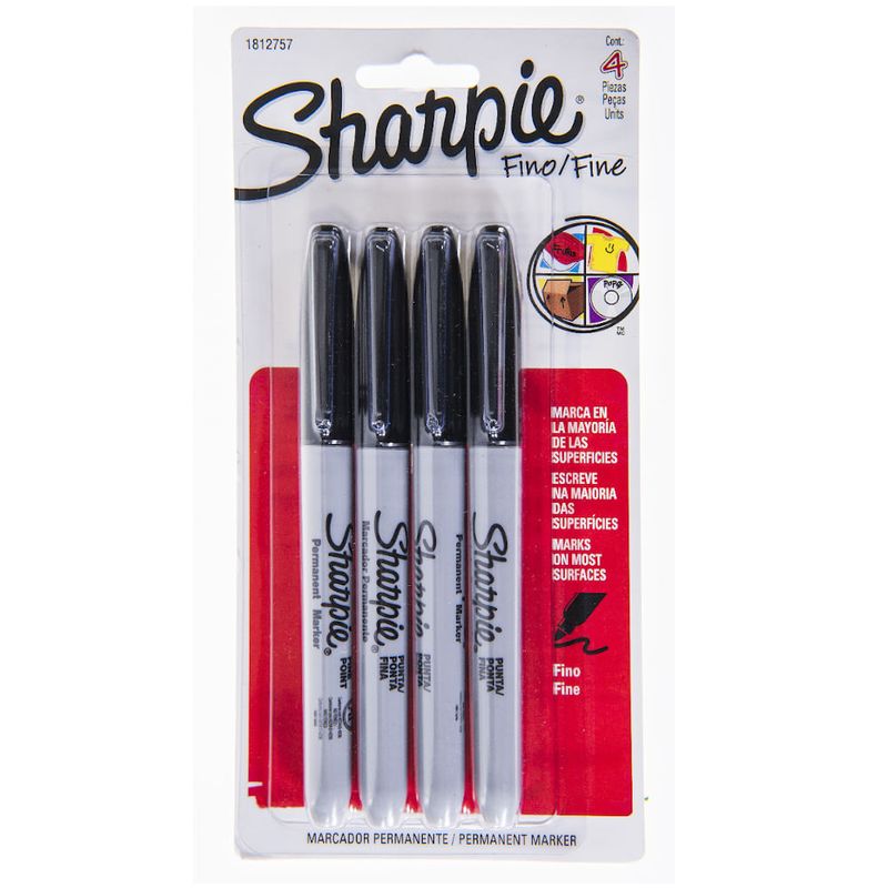 Marcador permanente SHARPIE fino 4un color negro, los mejores útiles para las clases.