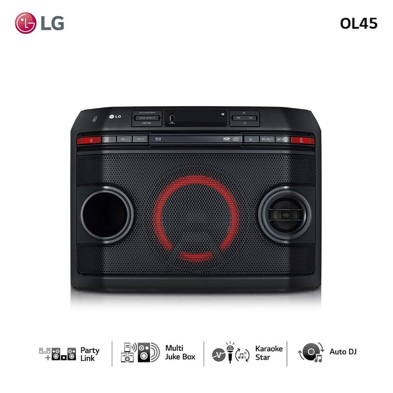 Torre de sonido LG XBOOM OL45, 220 W de potencia, Karaoke, Multi Bluetooth; Iluminación Multicolor.
