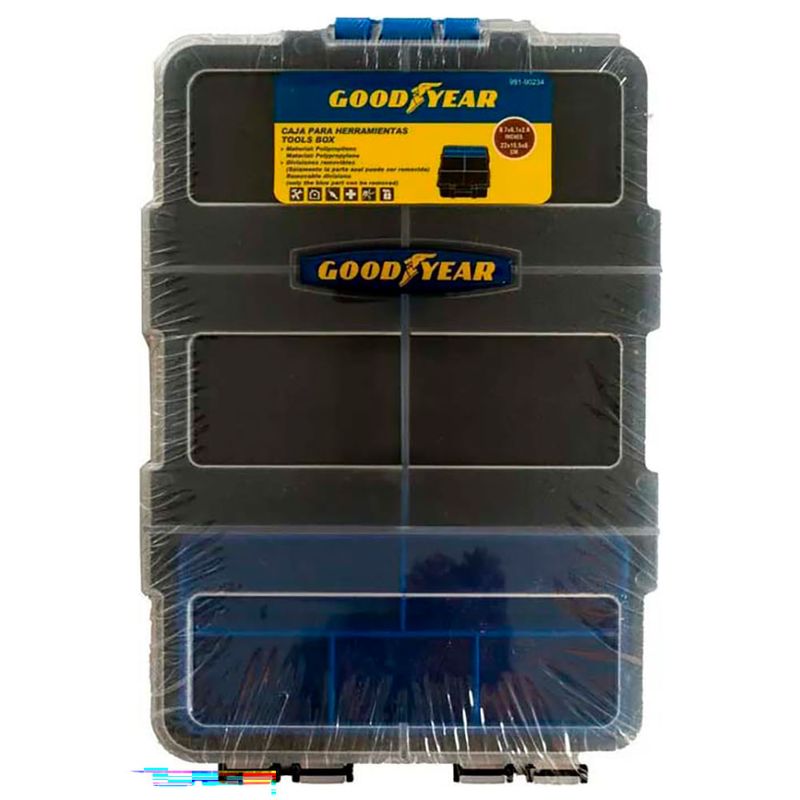 Organizador para herramientas GOODYEAR, 25 x 35 cm. Mantén tus herramientas ordenadas y accesibles con este práctico organizador. Diseño compacto con múltiples compartimentos para una fácil organización y almacenamiento.