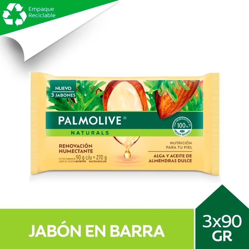 Pack x3 jabón de tocador PALMOLIVE almendra y lano 90 g