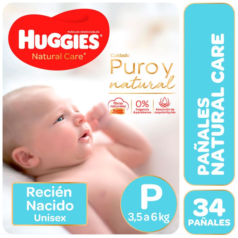 Pañal Huggies natural Care P Mega Ellos 34 un.