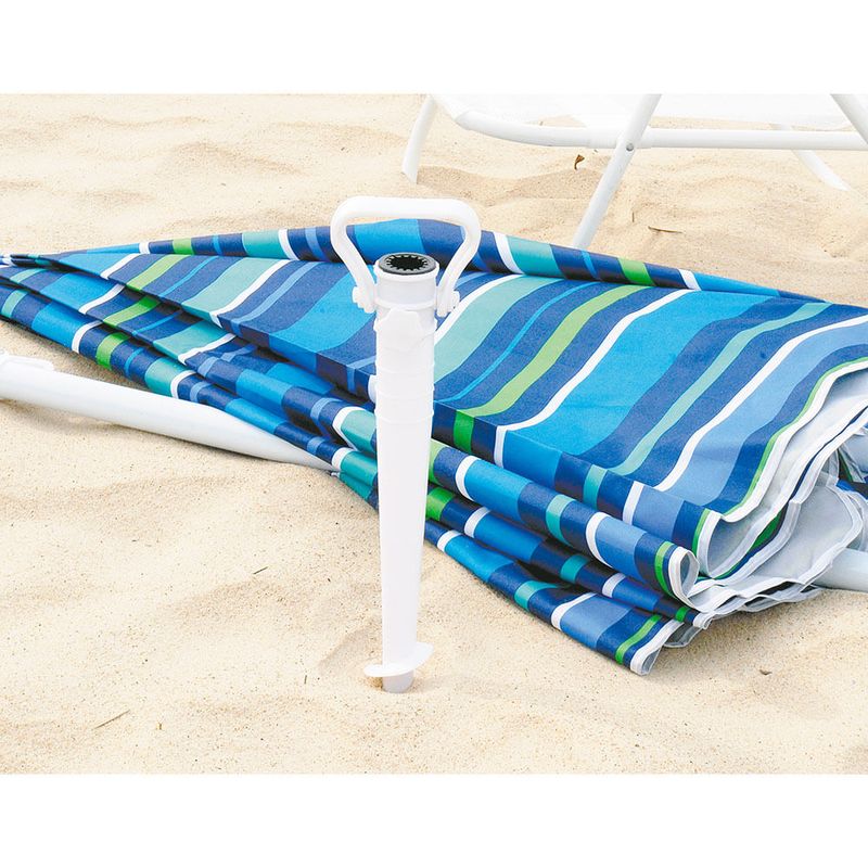 Colocar tu sombrilla en la playa nunca fue tan fácil! Este práctico soporte en forma de barrena, te ayudará a lograr gran firmeza al colocar tu sombrilla en la arena evitando que se caiga o se vuele por efecto del viento. Solo tienes que atornillarlo en la arena y ya estarás listo para disfrutar.. El artículo ofrecido es el que corresponde a la descripción, cualquier accesorio es meramente ilustrativo.