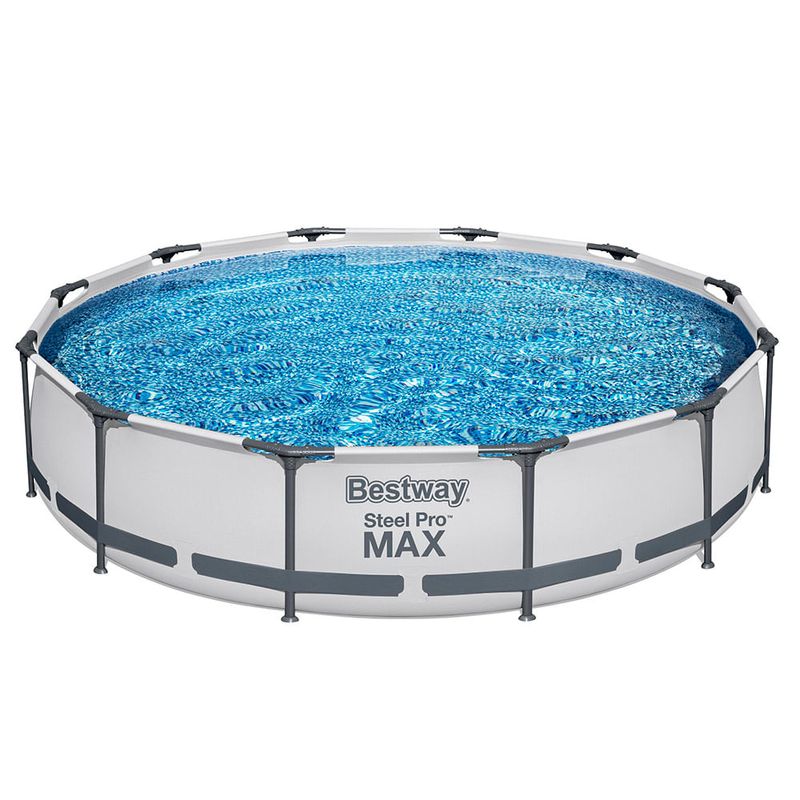 • El envío incluye – Piscina redonda desmontable Steel Pro MAX de Bestway, depuradora de filtro, cartucho de filtro y parche de reparación autoadhesivo; material: TriTech, medidas: 366x366x76 cm