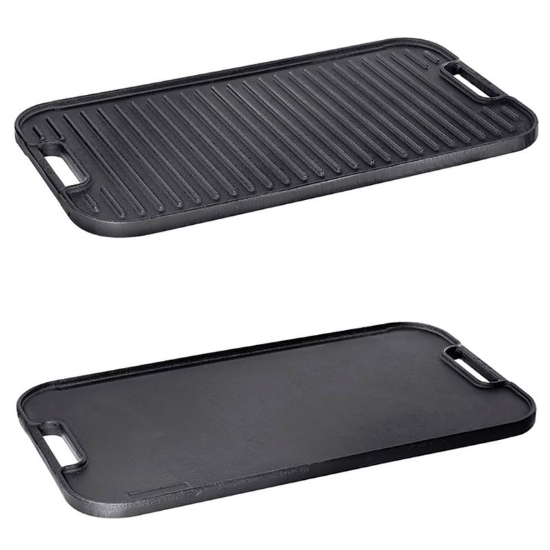Plancha doble de hierro, 47,9x27,9x1,8 cm: resistente y eficiente, ideal para cocinar a la parrilla o asar. Su diseño grande permite cocinar grandes porciones de manera uniforme y rápida.