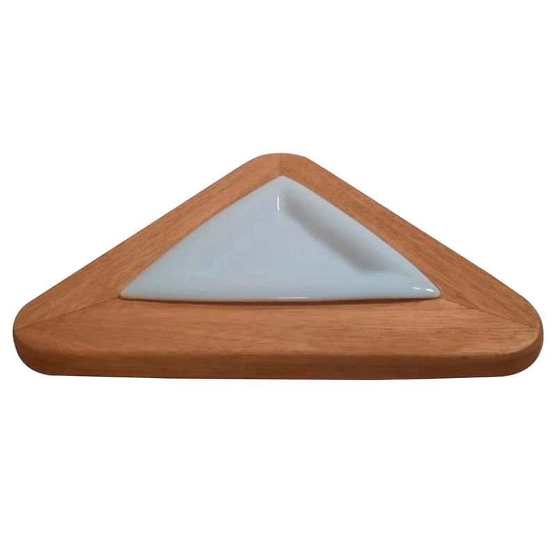 Plato triangular 40 cm con base madera. Producto de calidad.