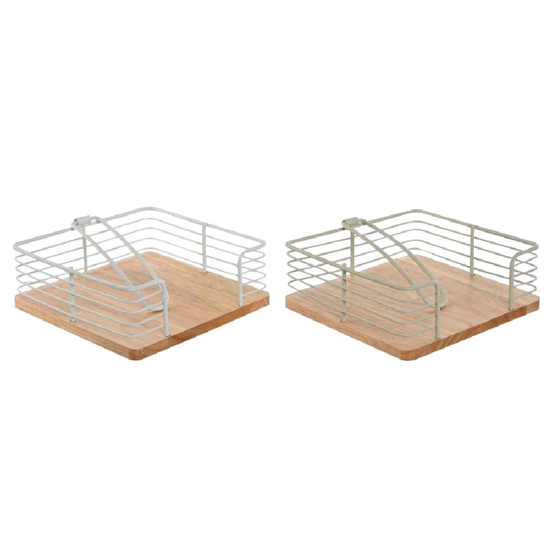 Este porta servilletas es una combinación estética de acero resistente color gris y madera, con dimensiones de 19 x 19 x 7 cm. Su diseño compacto y elegante es perfecto para cualquier tipo de ambiente y garantiza que las servilletas se mantengan organizadas y accesibles.