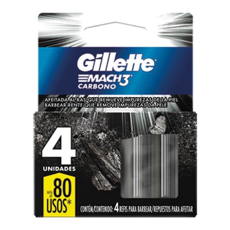 El repuesto GILLETTE Mach 3 Carbon x 4 asegura afeitados precisos. Con tres cuchillas afiladas y tecnología avanzada, proporciona un afeitado suave y eficiente. Mantén tu rendimiento óptimo con este práctico paquete de repuestos.