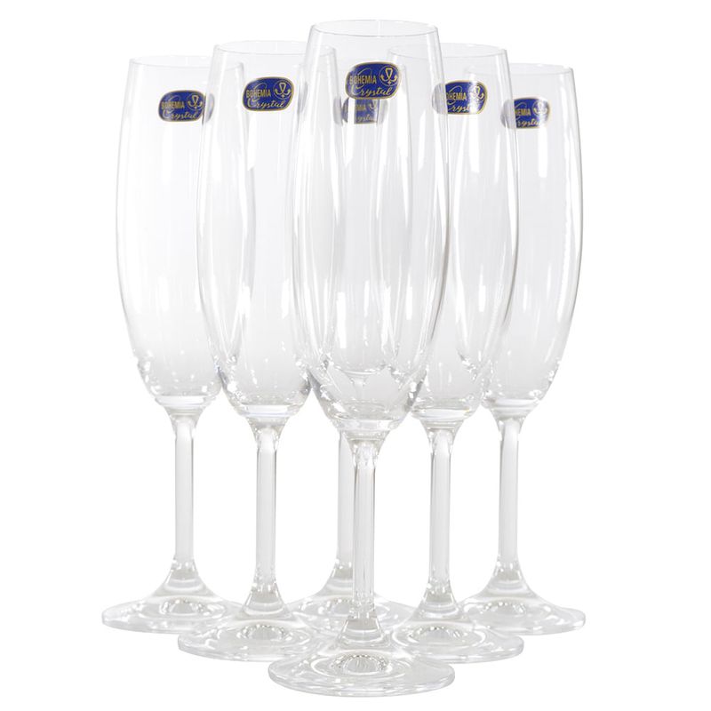 ¡Celebrá brindando con las copas BOHEMIA! Las copas BHOEMIA modelo Lara, diseño flauta son fabricadas en cristal. Excelente calidad. Su capacidad es 220 cc. El set incluye 6 unidades.