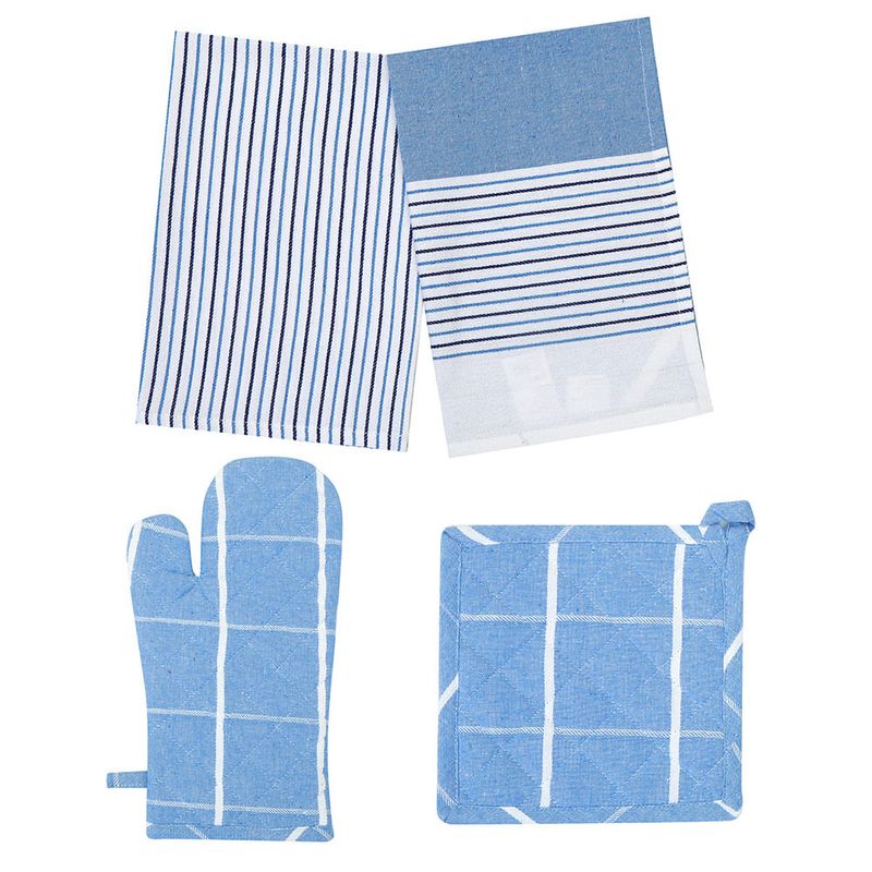 Set Cocina Manopla + Agarradera+ 2 Repasadores Azul
