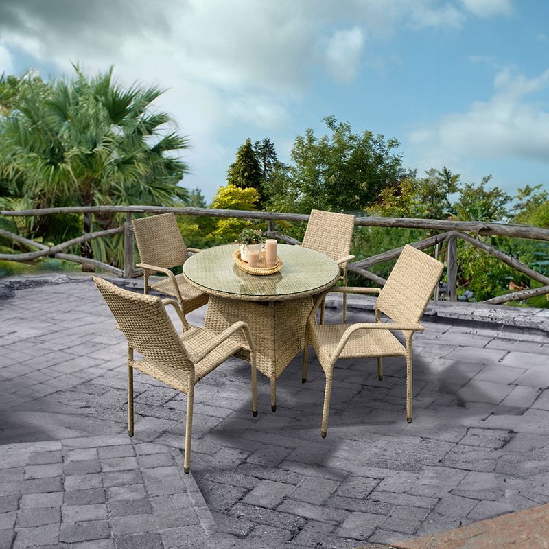 Set de jardín en Acero/Ratán mesa + 4 sillas día 100xh75 cm