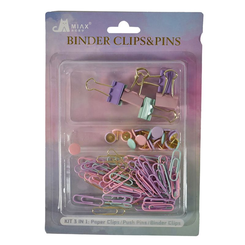 Set de oficina 6 doble clips + 30 chinches + 80 clips