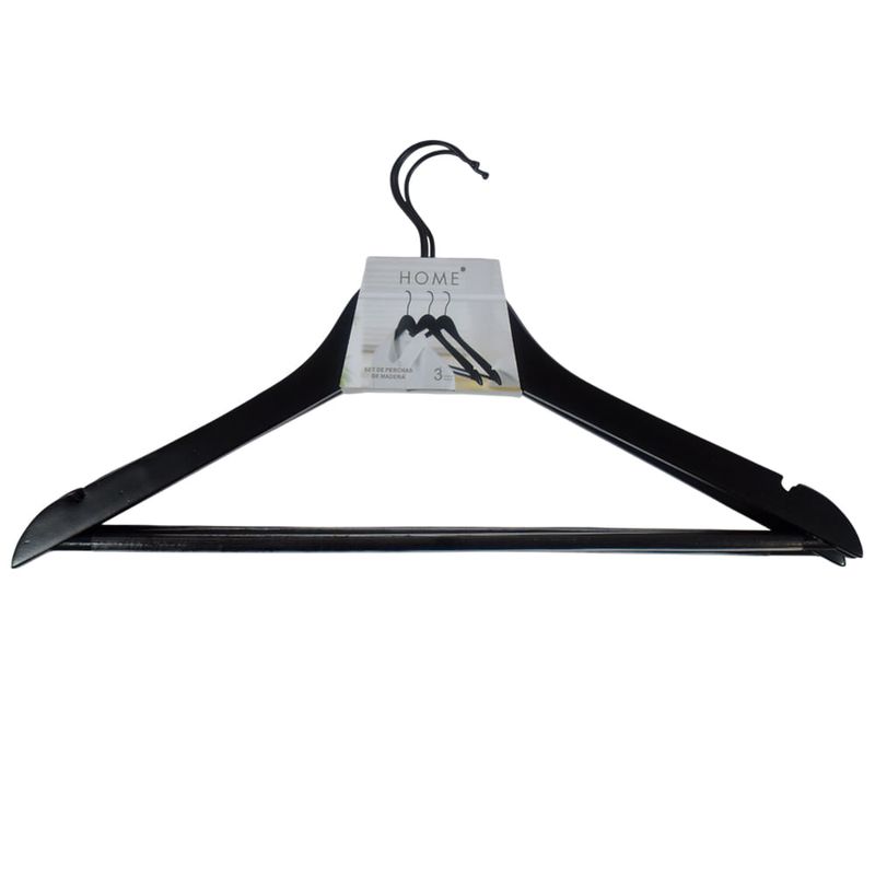 El set de perchas de madera HOME incluye 3 unidades en color negro. Son resistentes y duraderas, perfectas para colgar todo tipo de prendas. Además, su diseño elegante y clásico aportará un toque de distinción a tu armario. Optimiza espacio y organiza tu ropa con estilo.