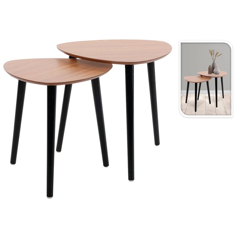 Este set incluye dos mesas auxiliares de madera en color negro, de la marca NAT. Son elegantes y versátiles, ofreciendo funcionalidad a cualquier espacio. Destacan por su diseño compacto y de fácil ubicación, siendo ideales para proporcionar una superficie extra donde la necesites.