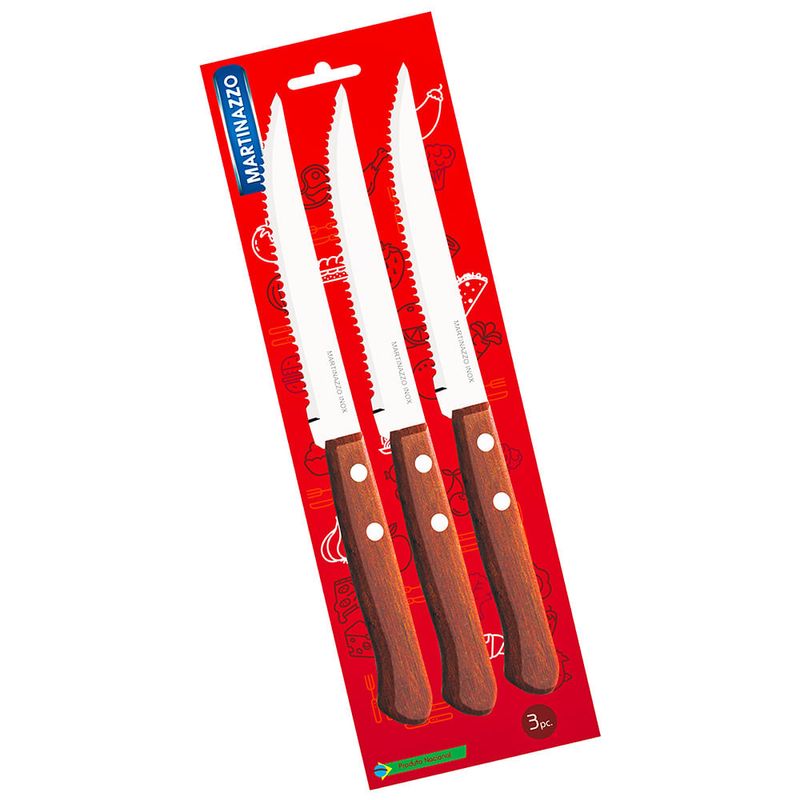 Set x 3 cuchillos acero inoxidable mango madera