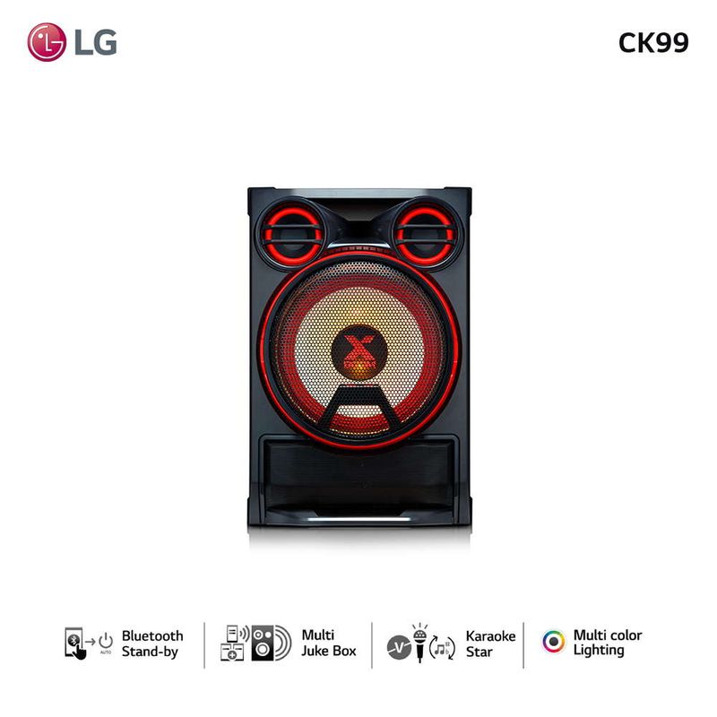 Minicomponente LG Mod. CK99 potencia 5000 w. Conexión USB x 2. Bluetooth. Entrada para micrófono con función karaoke /DJ. Control remoto. Sintoniza FM. Garantía 1 año . Características. 5000 vatios Bocina Potente Pro DJ Multi Color Party Lighting Karaoke Star Efectos vocales .Especificaciones Potencia 5000 W Entrada USB 2 Bluetooth Auto DJ Luces LED Parlantes Diseño Tipo DJ Party Accelertor Sincronización con TV DJ Loop DJ Pro