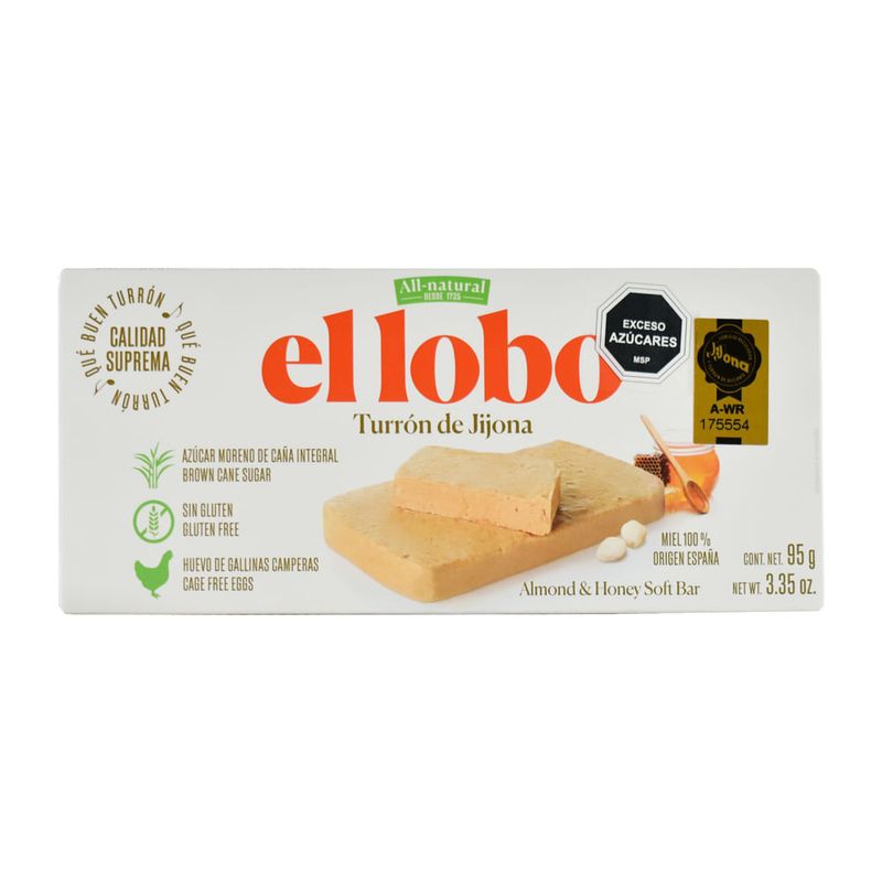 El Turrón Jijona de El Lobo, 95 g, es una delicia tradicional española. Su suave y almendrado sabor junto con su textura única lo convierten en un placer navideño irresistible.