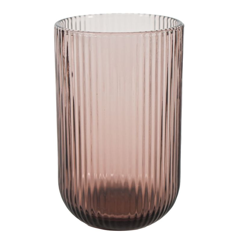 Este vaso de vidrio bordeaux, con medidas de 13 x 8 cm, añade un toque sofisticado a cualquier mesa. Su color profundo y elegante lo convierte en una opción perfecta para eventos especiales o uso diario.