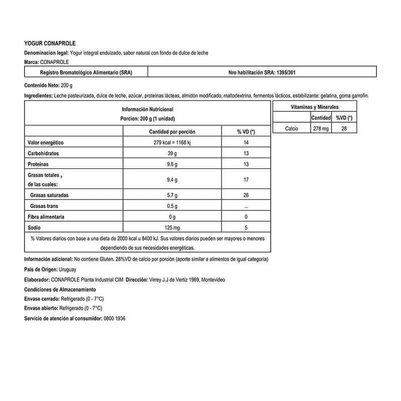 Yogur CONAPROLE con Dulce de Leche 200 cc